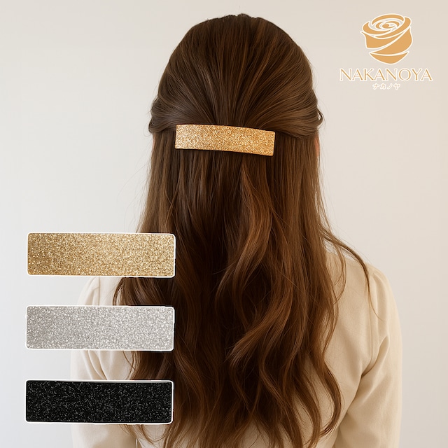 [ナカノヤ] NAKANOYA フレンチバレッタ 80mm 1個 大きめ 大きい ビッグ ラージサイズ Lサイズ 軽量 プラスチック 樹脂 セルロースアセテート アセチルセルロース 酢酸セルロース 滑り止め付き ヘアクリップ 後ろ髪 サイド ラメ グリッター キラキラ 横長 長方形 レクタングル カーブ ミニマル 光沢 グロス グロッシー ポリッシュ フェミニン ナチュラル フォーマル ビジネス NKBT15