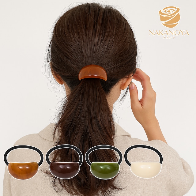 [ナカノヤ] NAKANOYA ヘアゴム 1個 プラスチック 樹脂 アクリル 飾り付きヘアゴム ゴムバンド ヘアタイ ポニーテールホルダー 無地 シンプル くすみカラー アーチ 楕円 オーバル 光沢 艶あり つやあり NKHT1