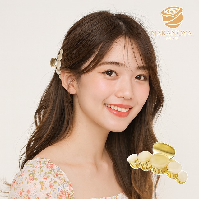 [ナカノヤ] NAKANOYA バンスクリップ 金属 合金 メタル パール 真珠 バンス ジッケピン ヘアクリップ ミニバンス フラワー 椿 マット 艶消し つや消し つやけし 小さめ 小さい ミニ スモールサイズ Sサイズ エレガント 上品 気質 NKVS8