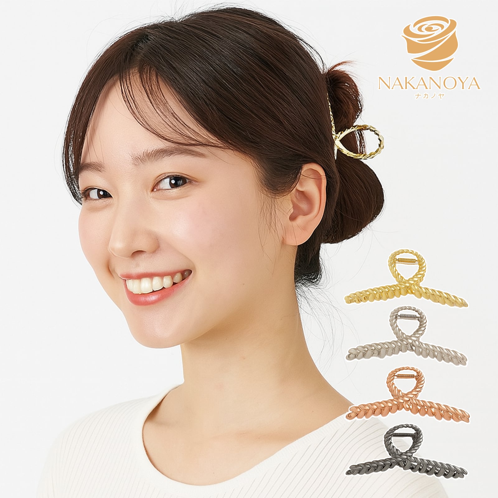 [ナカノヤ] NAKANOYA バンスクリップ 1個 中くらい ミディアム ミドルサイズ Mサイズ 金属 合金 メタル ヘアクロー クロークリップ ヘアバンス スプリングクリップ バネ式クリップ カニクリップ グリップクリップ チッケピン ジッケピン ヘアクリップ ツイスト ねじり ねじれ ねじねじ 結び目 ウェーブ リボン 光沢 グロス グロッシー ポリッシュ NKVM13