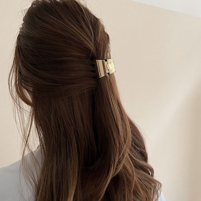 このミニバンスクリップは、シンプルで無地のデザインが特徴です。光沢のある金属合金製で、髪をしっかりとキャッチします。スモールサイズで小さめのため、さりげないアクセントとして最適です。