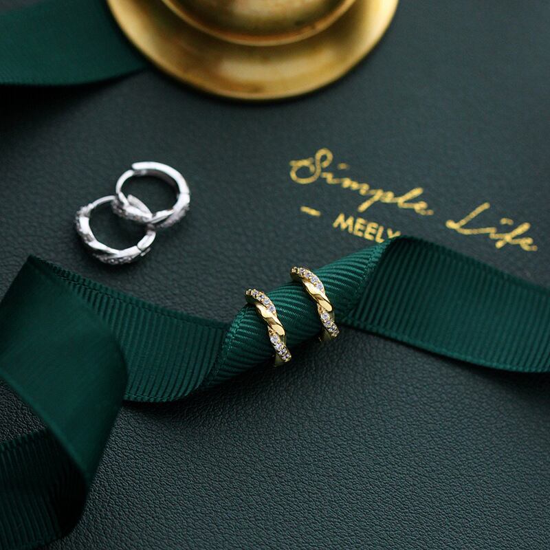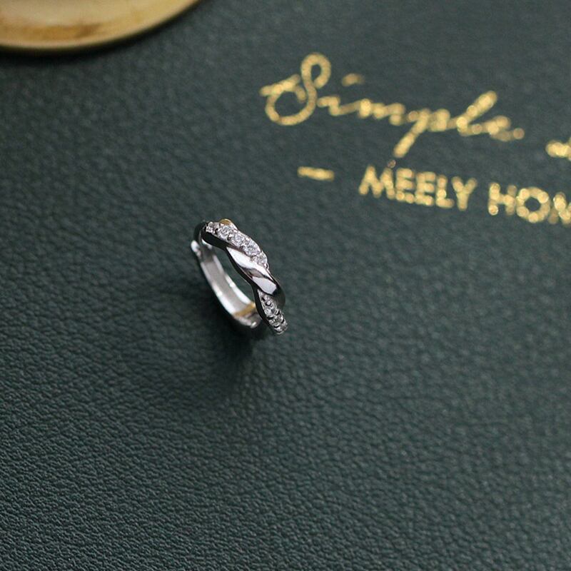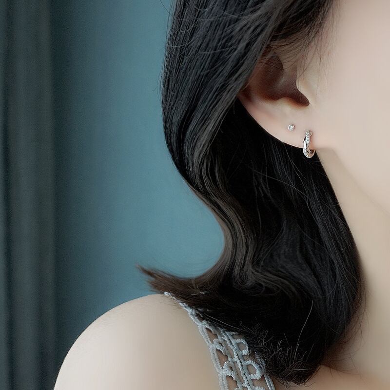 この商品は、耳たぶにぴったりと沿うハギー型のフープピアスで、ワンタッチ式の留め具により着脱が簡単な設計です。ツイストされたフレームには、人工ジルコン風のストーンが美しく施されており、控えめながらも上品な輝きを放ちます。ビジネス、日常使い、セレモニーなど幅広いシーンに活躍し、プレゼントとしても好適です。サイズは小ぶりで、装着時も引っかかりにくく、使い勝手の良いアクセサリーです。