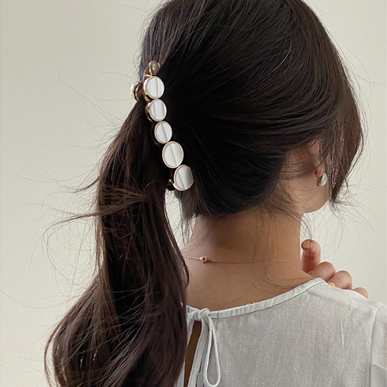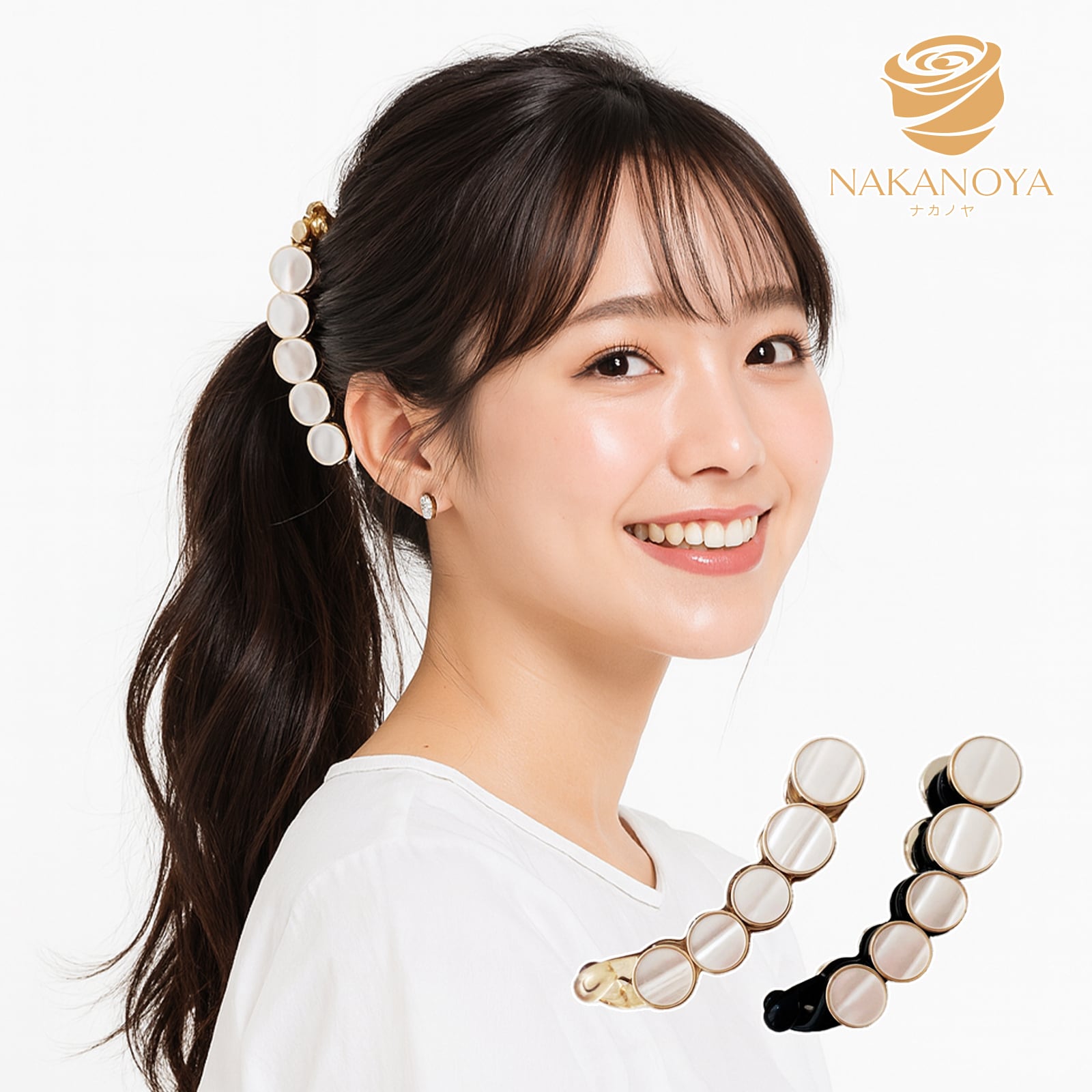 [ナカノヤ] NAKANOYA バナナクリップ 1個 大きめ 大きい ビッグ ラージサイズ Lサイズ 軽量 プラスチック 樹脂 PS ポリスチレン ヘアクリップ ツインコーム ダブルコーム 鏡面風 石目 大理石 マーブル シンプル 縦型 垂直 カーブ ドット 光沢 グロス グロッシー ポリッシュ エレガント 上品 気質 NKBV2 | ナカノヤ公式ストア|アクセサリー・ファッション雑貨の通販専門店