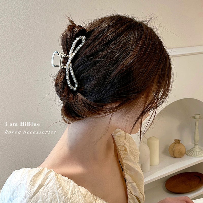 このバンスクリップは、エレガントなデザインの8の字フレームを特徴とし、透かし模様が上品な印象を与えます。光沢のある仕上げで、髪をしっかりとまとめることができ、大きめサイズなのでボリュームのあるスタイルにもぴったりです。パールのアクセントが加わり、気品ある雰囲気を演出します。