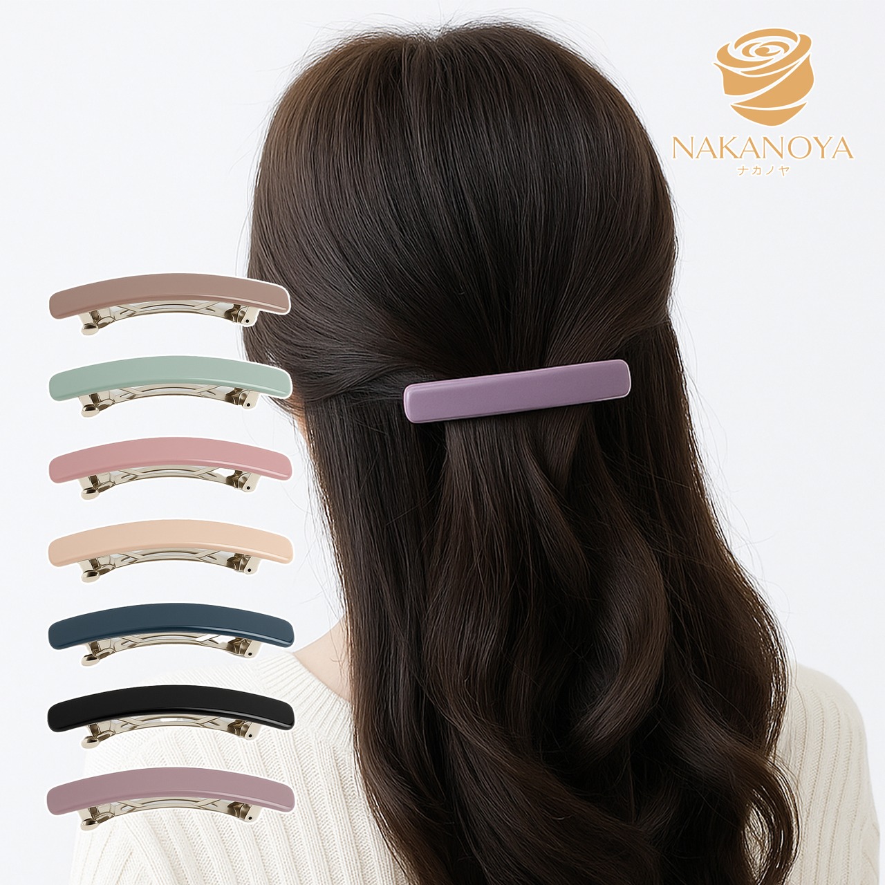 [ナカノヤ] NAKANOYA バレッタ 65mm 1個 プラスチック 樹脂 ヘアクリップ 無地 シンプル くすみカラー カーブ アーチ 細め 細長 四角 長方形 スクエア レクタングル 光沢 グロッシー 艶あり つやあり 中くらい ミディアム ミドルサイズ Mサイズ 軽量 NKBT6 | ナカノヤ公式ストア|アクセサリー・ファッション雑貨の通販専門店
