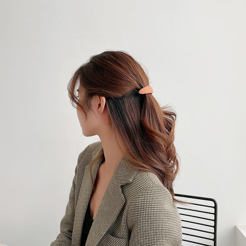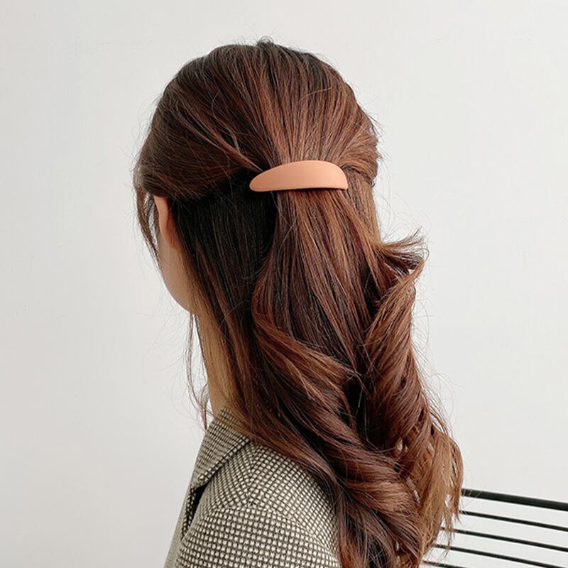おしゃれなべっ甲マーブルデザインが施されたプラスチック製のヘアクリップです。半透明でマットな艶消し仕上げのカーブ形状が、髪に自然なフィット感を与えます。ミドルサイズで軽量なので、日常使いに最適です。