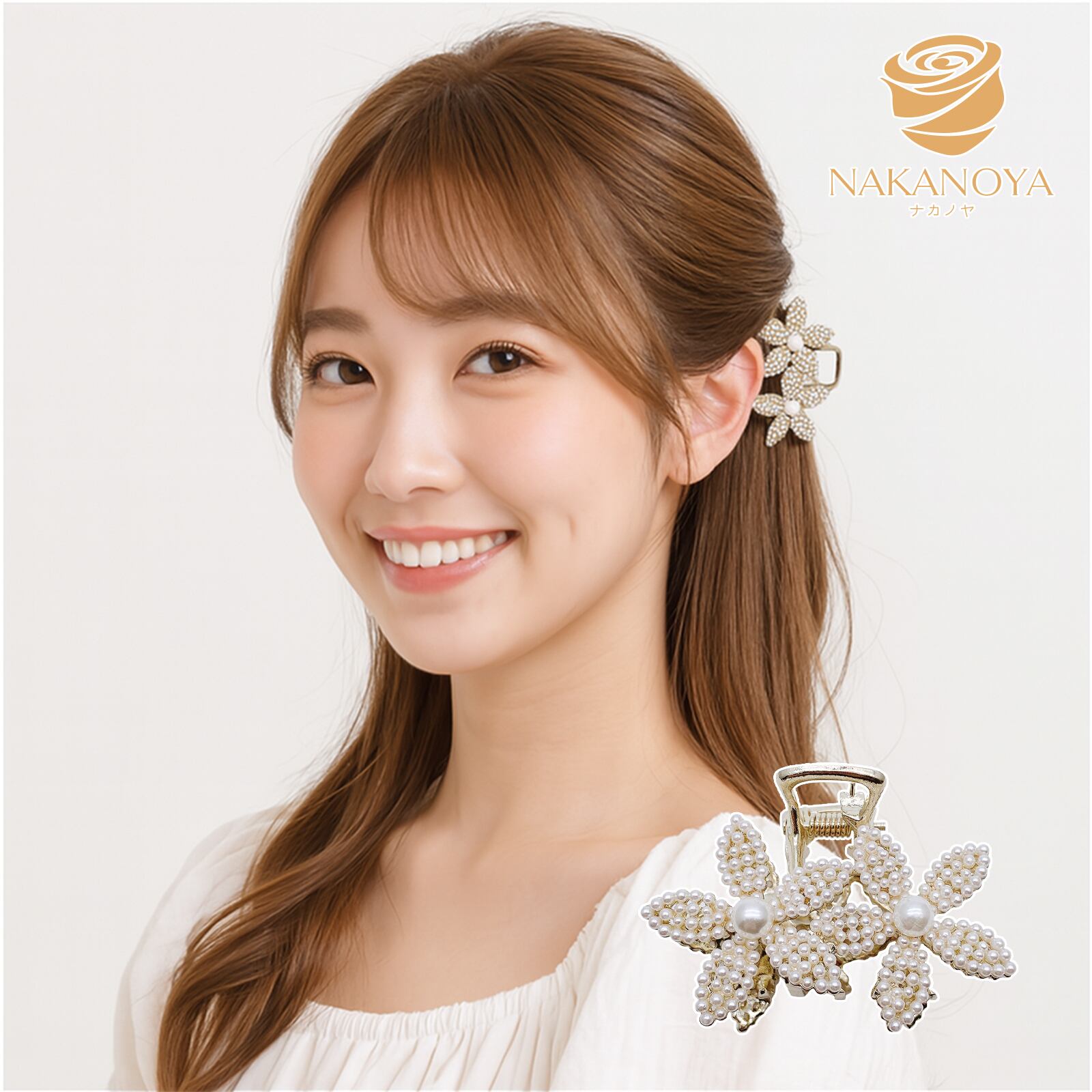 [ナカノヤ] NAKANOYA バンスクリップ 金属 合金 メタル パール 真珠 バンス ジッケピン ヘアクリップ ミニバンス フラワー パール編み 小さめ 小さい ミニ スモールサイズ Sサイズ エレガント 上品 気質 NKVS21 | ナカノヤ公式ストア|アクセサリー・ファッション雑貨の通販専門店