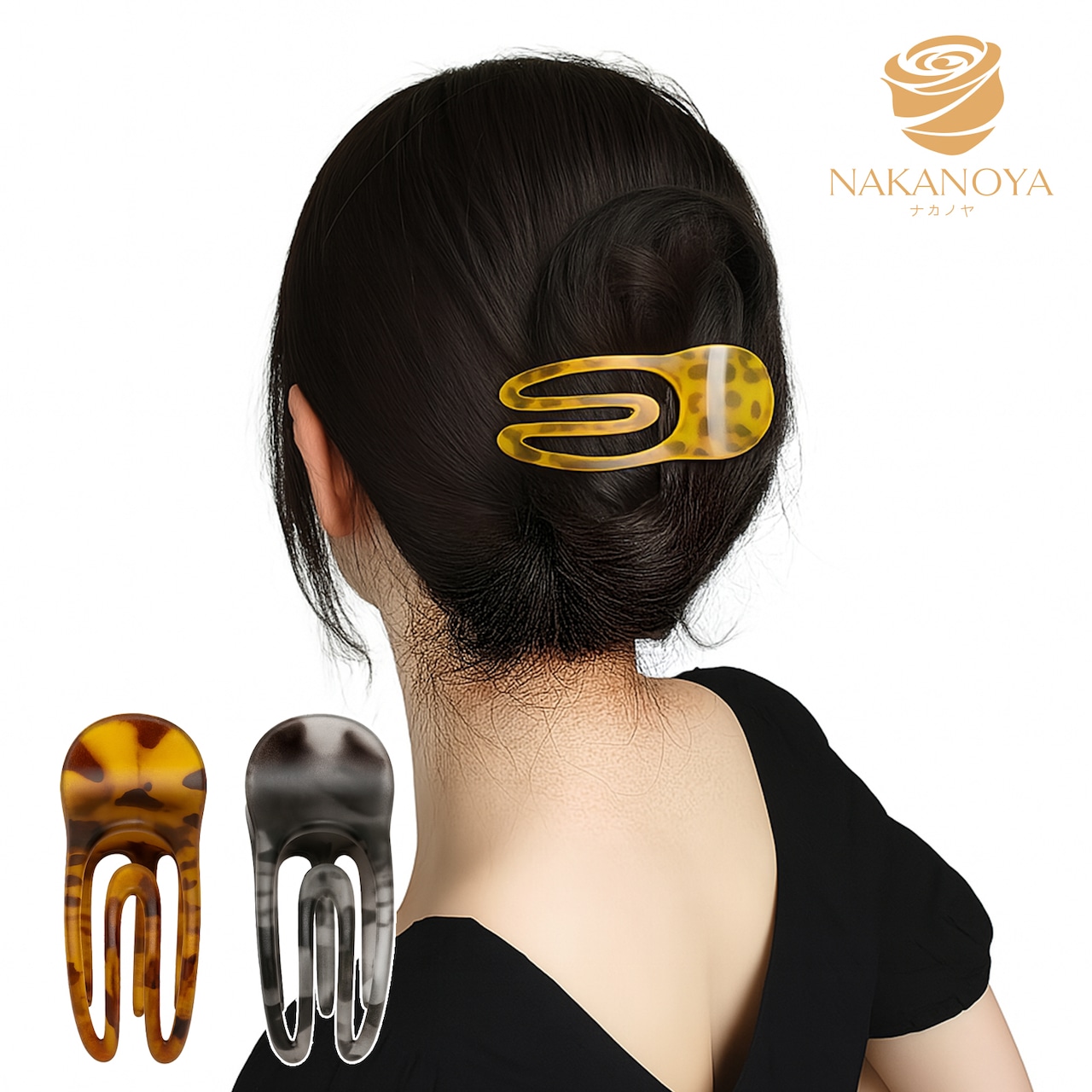 [ナカノヤ] NAKANOYA サイドバンスクリップ 1個 ヘアクロー 横向き 横開き 横刺し ヘア バンス フォーク コーム クリップ 中くらい ミディアム ミドルサイズ Mサイズ 軽量 サイド 後頭部 プラスチック 樹脂 PC ポリカーボネート べっ甲柄 マーブル クリア 半透明 3本足 2本爪 マット 艶消し つや消し つやけし カジュアル ナチュラル ビジネス フェミニン NKSV8