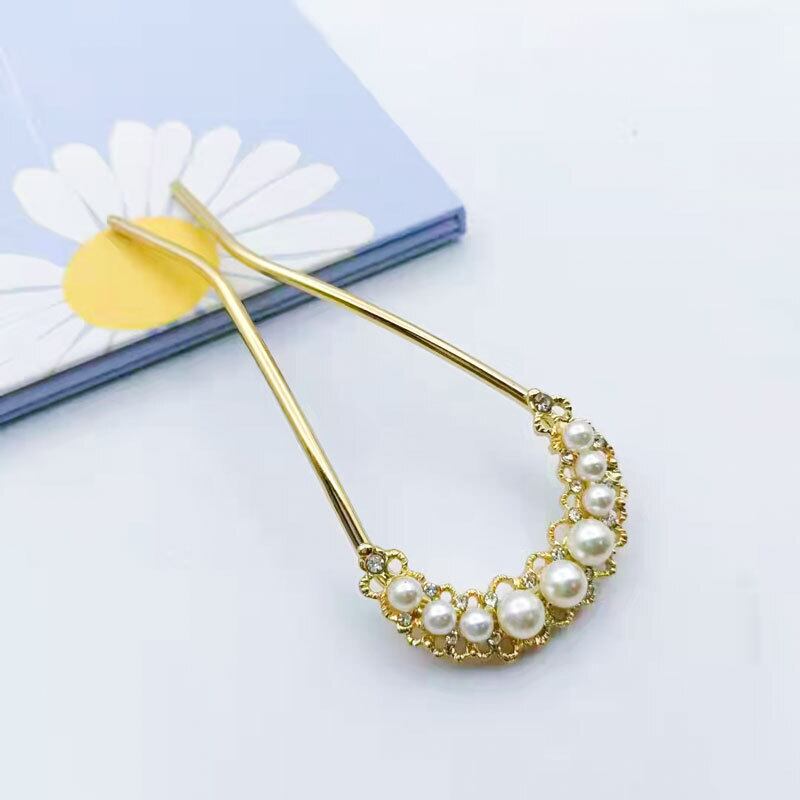 こちらのUピンは、金属合金製で、光沢感のある上品なデザインが特徴です。パールや真珠があしらわれたエレガントなデザインで、和装や浴衣、着物にぴったりのアイテムです。ミディアムサイズで、気品溢れる仕上がりが、ヘアスタイルに優雅さを加えます。