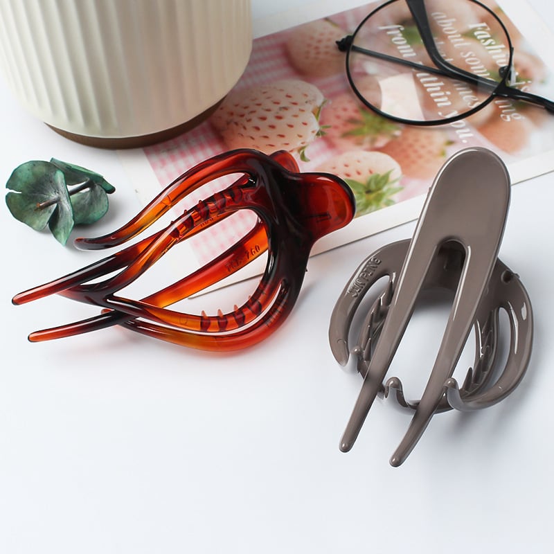 [ナカノヤ] NAKANOYA サイドバンスクリップ 1個 ヘアクロー 横向き 横開き 横刺し ヘア バンス フォーク コーム クリップ 中くらい ミディアム ミドルサイズ Mサイズ 軽量 サイド 後頭部 プラスチック 樹脂 PC ポリカーボネート べっ甲柄 マーブル クリア 半透明 有機的 アートフォルム 4本足 1本爪 光沢 グロス グロッシー ポリッシュ カジュアル ナチュラル フェミニン フォーマル ビジネス NKSV15 | ナカノヤ公式ストア|アクセサリー・ファッション雑貨の通販専門店