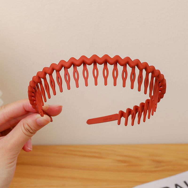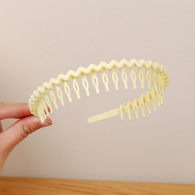 このカチューシャは、キャンディーカラーのマット仕上げが魅力のシンプルなデザインです。軽量なプラスチック素材で、長時間つけても快適な使い心地を実現しました。くし付き仕様で髪をしっかり固定し、美しいスタイルをキープします。